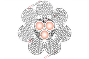 鋼絲繩電纜,抗拉專(zhuān)用電纜,電纜包裹在鋼絲繩之中,電纜在鋼絲繩的繩芯位置。